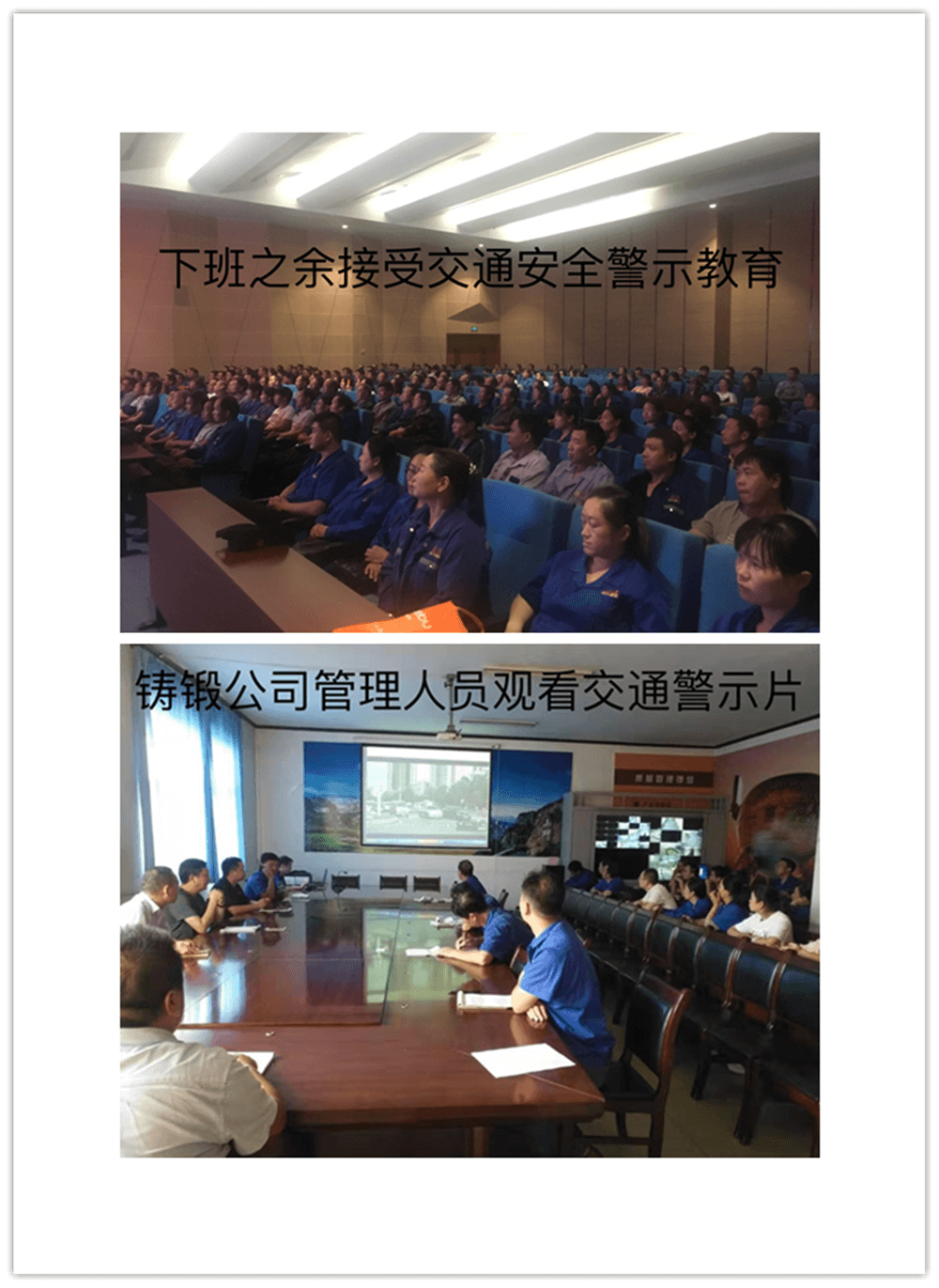 開展警示片宣傳教育活動(dòng)。集團(tuán)公司按單位分三次組織1000余名員工觀看交通事故警示教育片,集團(tuán)公司子公司林鋼、鑄鍛也積極按照方案要求組織收看教育片,同時(shí)各單位還利用本部門的微信工作群進(jìn)行轉(zhuǎn)發(fā)收看,達(dá)到警示教育全面覆蓋之目的。