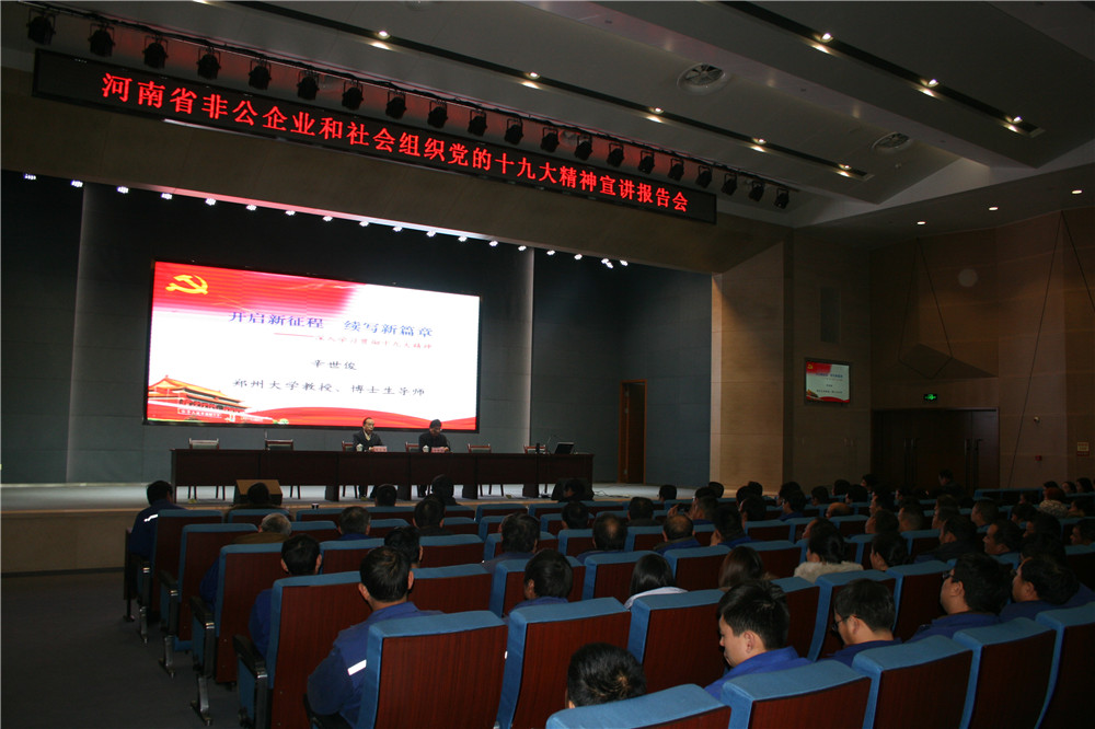 根據(jù)河南省委宣傳部、省委組織部安排部署,省非公企業(yè)和社會組織黨的十九大精神宣講報告會于12月11日下午在林州重機多功能廳舉行。省十九大精神宣講團成員、鄭州大學教授、博士生導師辛世俊作宣講報告,辛教授從八個方面對十九大報告深入淺出,通俗易懂闡述了報告精神實質和深刻內涵。安陽市委宣傳部、市委組織部,林州市委宣傳部有關領導參加并聆聽了宣講報告。公司黨委書記郭現(xiàn)生及中高層領導,全體黨員及入黨積極分子,機關各部室管理人員及車間管理人員共300余人聽取宣講報告。會后,公司黨委書記、董事長郭現(xiàn)生接受了安陽電視臺的采訪。