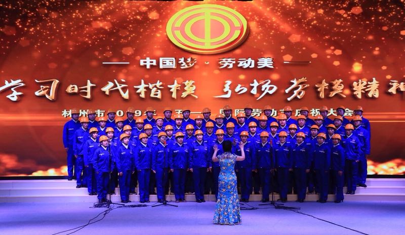 弘揚(yáng)勞模精神,唱響勞動(dòng)贊歌。在“五一”國際勞動(dòng)節(jié)到來之際,4月26日上午,林州市召開“五一”國際勞動(dòng)節(jié)慶祝大會(huì)暨百場演出送基層啟動(dòng)儀式,大會(huì)在我公司職工大合唱《沒有共產(chǎn)黨就沒有新中國》和《咱們工人有力量》中拉開帷幕。合唱聲音宏厚響亮,鏗鏘有力,唱出了我們工人階級的力量和氣勢,贏得了觀眾陣陣掌聲。