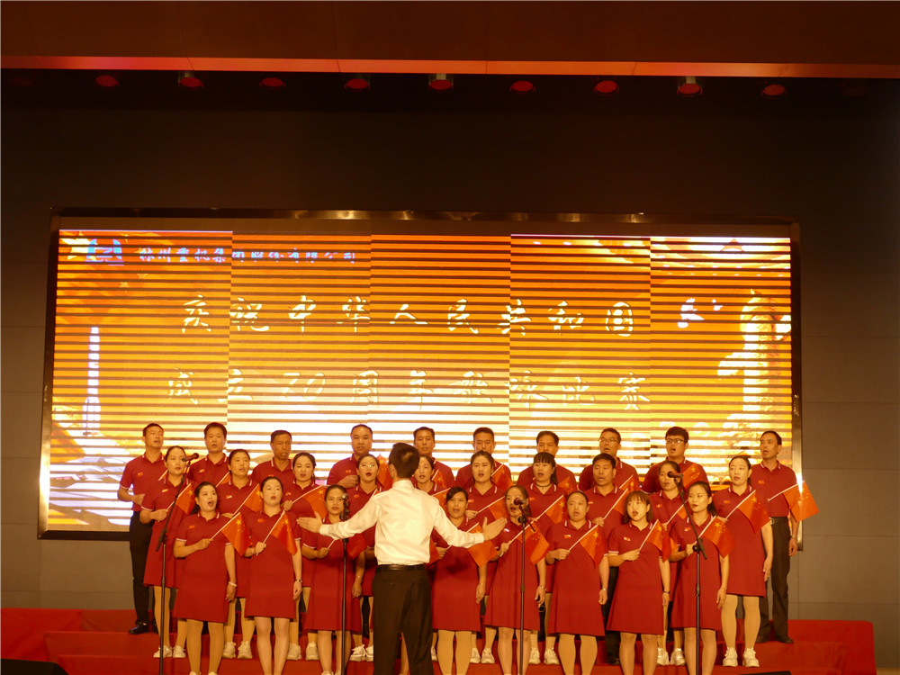 活動在全體合唱《歌唱祖國》的歌聲中達(dá)到高潮。集團(tuán)公司主要領(lǐng)導(dǎo)登臺同全場員工舞動起鮮艷的五星紅旗,共同歌唱祖國,歌唱美好的新時代。