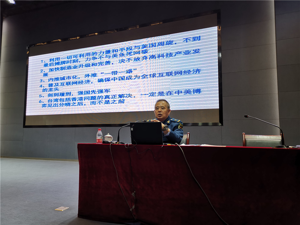 15日下午,喬良將軍在公司一樓多功能廳做了《從百年大變局看中美貿(mào)易戰(zhàn)》專題講座,公司中高層領(lǐng)導(dǎo)及管理人員、部分員工骨干300余人聆聽了報告。喬良將軍從中美貿(mào)易戰(zhàn)的深層次背景與本質(zhì)、特朗普為何要發(fā)動貿(mào)易戰(zhàn)、特朗普面對的悖論、中國的對策與路徑四個方面進行了鞭辟入里、深入淺出的精彩講授。通過對中美貿(mào)易戰(zhàn)的熱點分析中,使大家對中國改革開放40年的偉大成就、中華民族的偉大復(fù)興及復(fù)興之路的戰(zhàn)略選擇有了全面和深入的理解。一方面,提升了全員的民族自豪感和對中華民族偉大復(fù)興的堅定信念;另一方面,堅定了公司開展民參軍業(yè)務(wù),順應(yīng)中國發(fā)展需求,實現(xiàn)軍工報國的決心。
