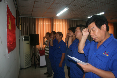 2013年新入黨的原金帥、常建昌等五名黨員進(jìn)行了入黨宣誓。