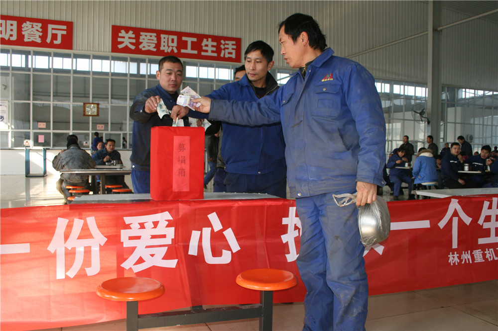 11日上午,公司工會(huì)立即發(fā)出募捐倡議書。下午二點(diǎn)在公司辦公樓前舉行了募捐儀式并現(xiàn)場(chǎng)募集。公司總經(jīng)理郭釧代表公司捐款10000元,公司董事韓錄云代表其家人捐款10000元,其他公司領(lǐng)導(dǎo)及機(jī)關(guān)部室、分子公司管理人員紛紛捐款,特別是與郭保紅素不相識(shí)、在我公司施工的深圳市朗奧潔凈科技股份有限公司捐款3000元,河南派普建工集團(tuán)有限公司捐款1000元,供應(yīng)商延津縣熱處理廠張東??吹侥季杌顒?dòng)也捐款500元,短短不到半個(gè)小時(shí)募集捐款近4萬元。更值得一提的是原林州重機(jī)集團(tuán)員工張國(guó)華,也是腎病患者,曾經(jīng)得到過林州重機(jī)捐款資助的他看到朋友圈的消息后,也委托朋友捐款10元,他說:我也是一名尿毒癥患者,我也曾經(jīng)得到過林州重機(jī)的捐助,現(xiàn)在我雖然還在治療之中,但我也要盡我一點(diǎn)心意。多么樸實(shí)的話語(yǔ),多么善良的員工,一方有難八方支援,真正體現(xiàn)出了我們林州重機(jī)是一個(gè)互助友愛的大家庭。12日中午,公司工會(huì)又在職工食堂舉行第二次募捐活動(dòng),累計(jì)募捐善款 42337元。