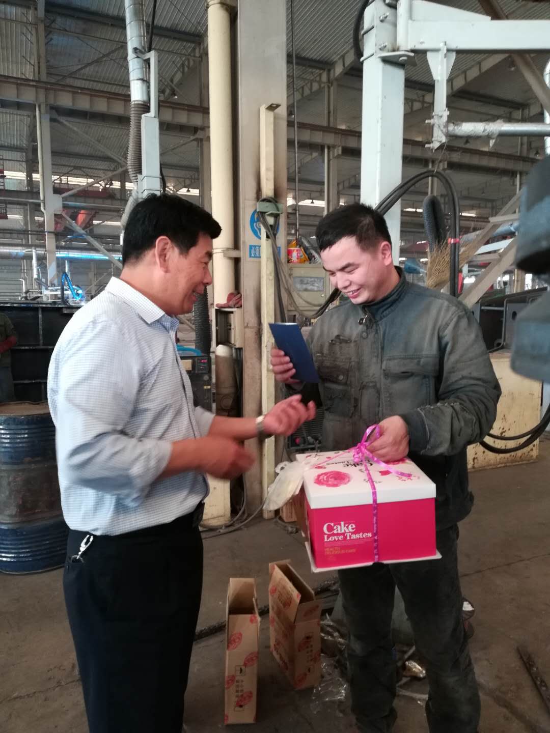 5月10日上午8時許,公司工會主席路建存攜帶生日蛋糕和生日賀卡走進車間,親自將生日禮物送到當天過生日的員工手中,并代表公司董事長、總經(jīng)理表示生日祝賀。當路主席把生日蛋糕送到員工手中時,他們感到非常驚訝,有的員工本人都不記得今天是自己生日,而公司把生日禮物送到了手中,員工們激動的說:非常感謝公司領導的關(guān)懷。